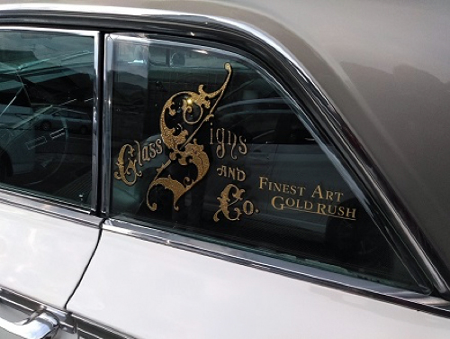 話が脱線しましたが、今回の依頼は、グラスサインの合わせ加工で、クラッシックカーリアガラスに取り付けるガラスになります。